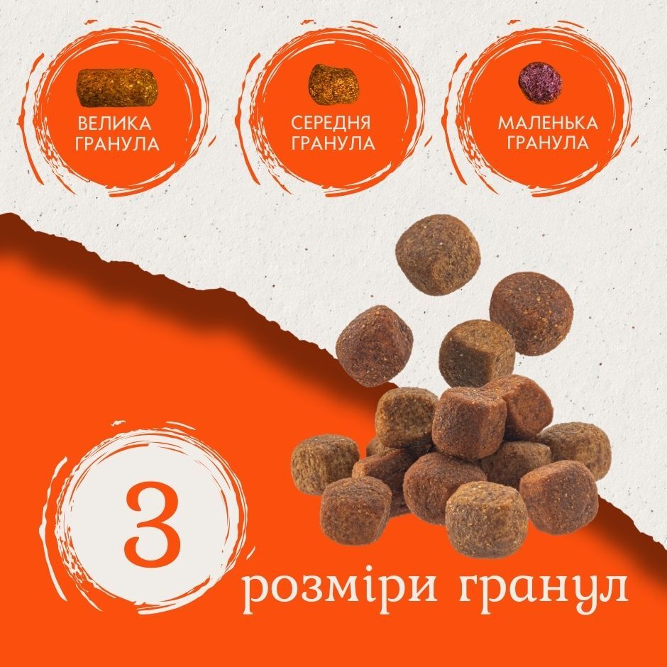 Корм не містить ГМО, штучних барвників і смакових добавок – ми використовуємо виключно натуральні антиоксиданти для збереження якості та користі продукту.